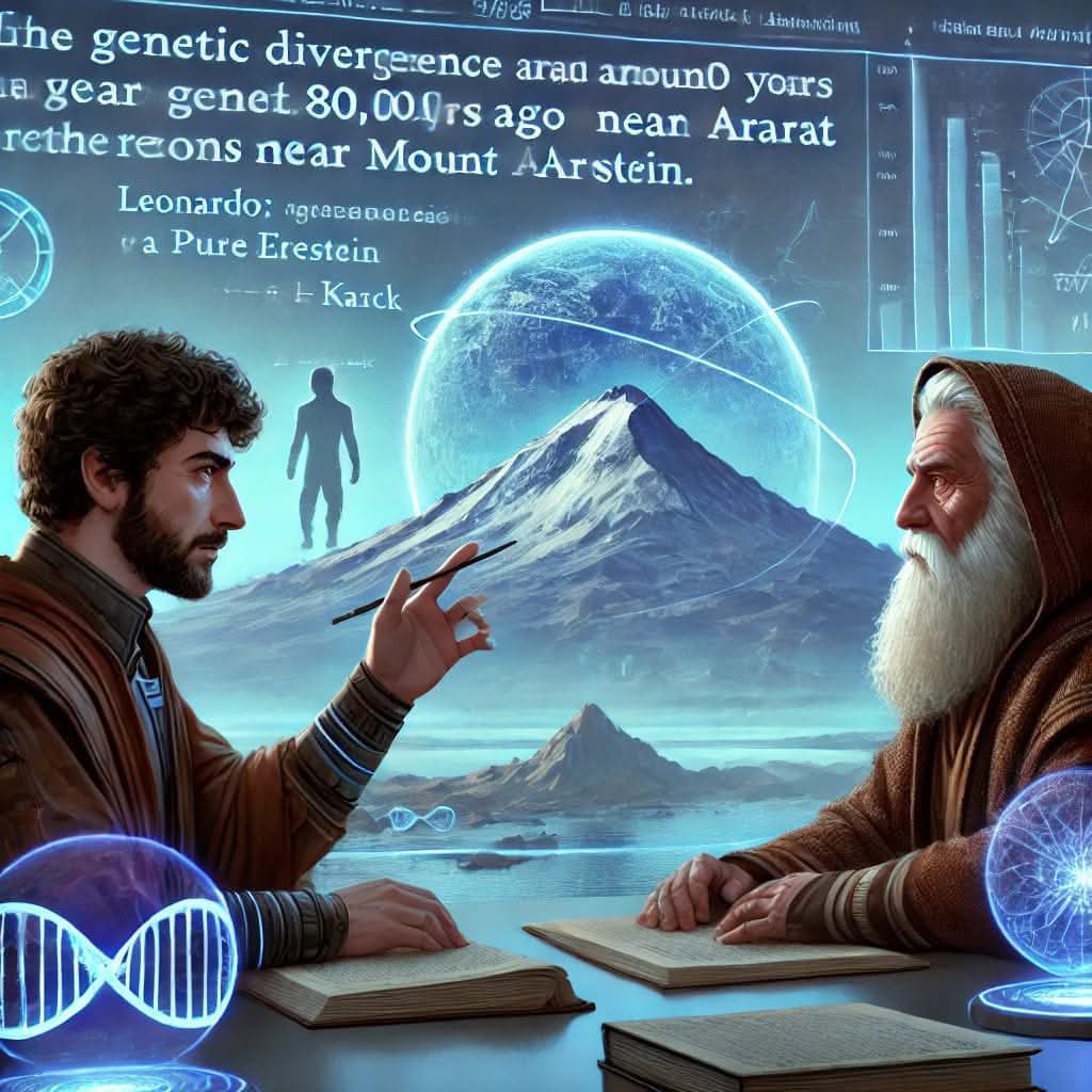 “Nack ne indica le basi. La divergenza dell’aplotipo DE del genoma avvenne ottantamila anni fa ai piedi del monte Ararat. E introduce un altro antenato degli Heliconiani del XX secolo: Albert Einstein, colui che ha rivelato la teoria della relatività. Nack aggiunge che vi è un’interpretazione secondo cui la relatività non si applica solo alla correlazione tra spazio e tempo, ma anche alle relazioni tra tempi diversi.”