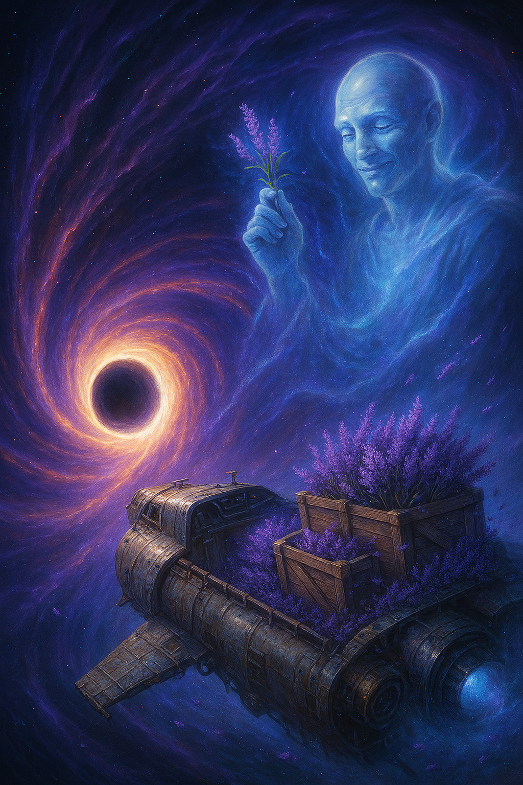“La nonna Arcadia scrisse di aver scoperto ‘Il Segreto di Ponyets.’ Ponyets, come sai, era amico della prima Arcadia e autoproclamato protettore di Arcia. Quando commerciava lavanda nella galassia, la sua nave ebbe un guasto e rischiò di essere risucchiata in un buco nero. In quel momento, mentre era privo di sensi, gli apparve in sogno una figura misteriosa, chiamata il ‘Servo Immortale,’ che gli disse: ‘Non temere. Anche il carico di lavanda è salvo. Piantalo nei campi di Dornick.’”