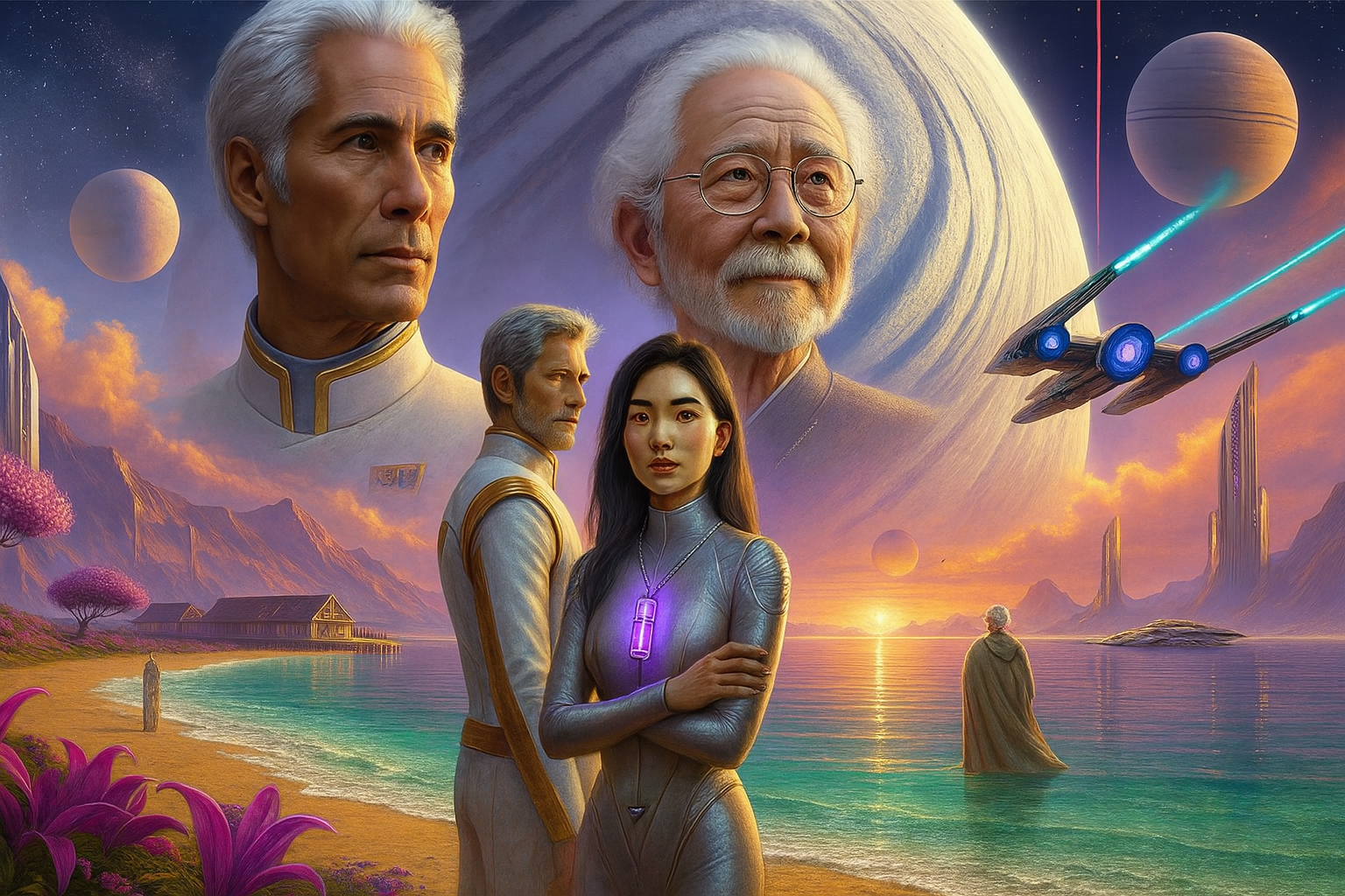 Bayta Darell contemplava rapita l’inconsueta bellezza di Haven, il pianeta su cui era appena discesa. Il cielo si stendeva come una tela dipinta di bianco e di rosa, mentre davanti a lei un mare limpido e immobile scintillava come cristallo. Quello splendore onirico non somigliava a nulla che avesse mai incontrato in altre parti della galassia. Eppure, non era per il paesaggio che era giunta fin qui. Portava con sé il fardello dei segreti—segreti della Seconda Fondazione e forse di qualcosa d’ancora più grande.