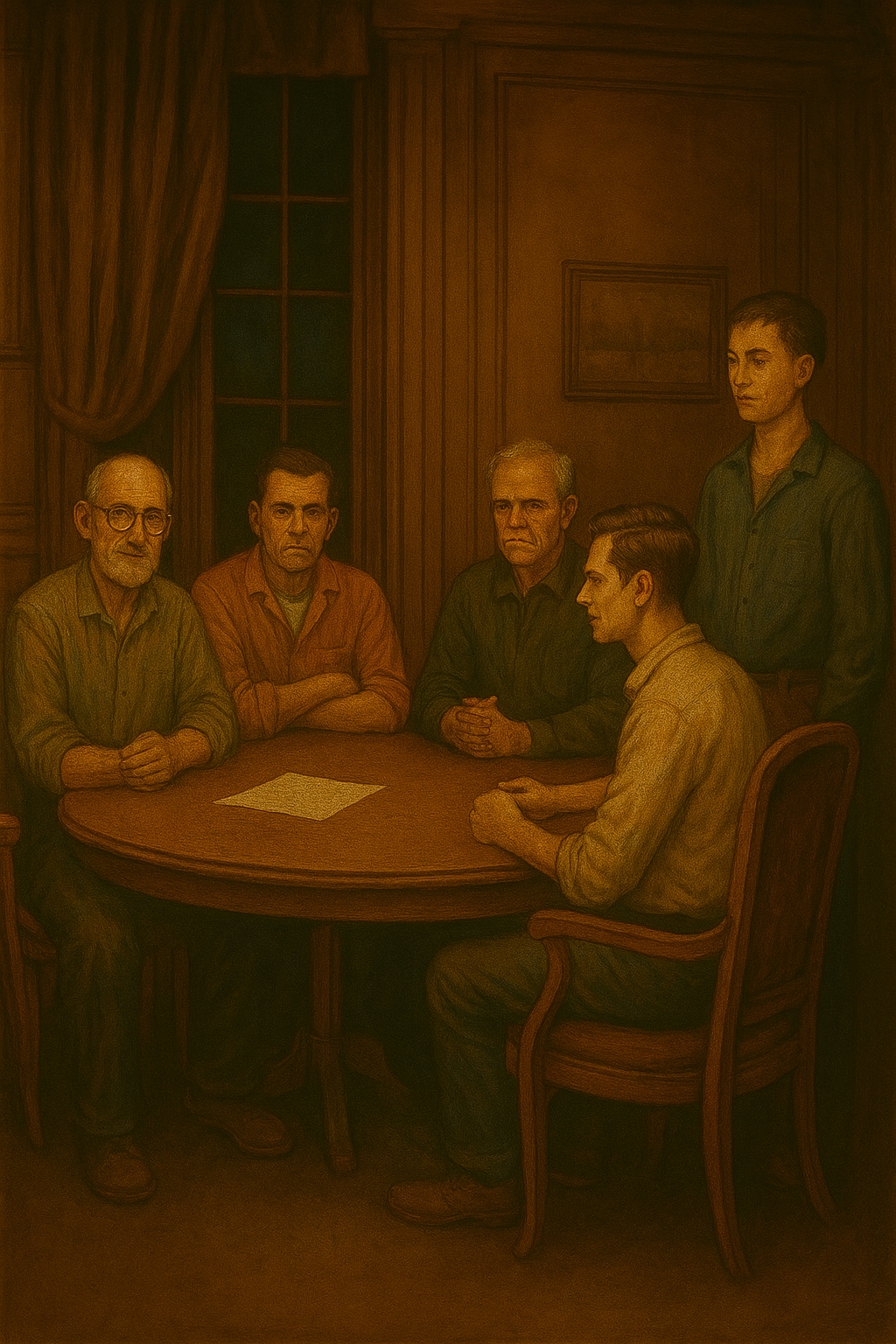 Al centro del salone, quattro uomini sedevano attorno a un tavolo rotondo.