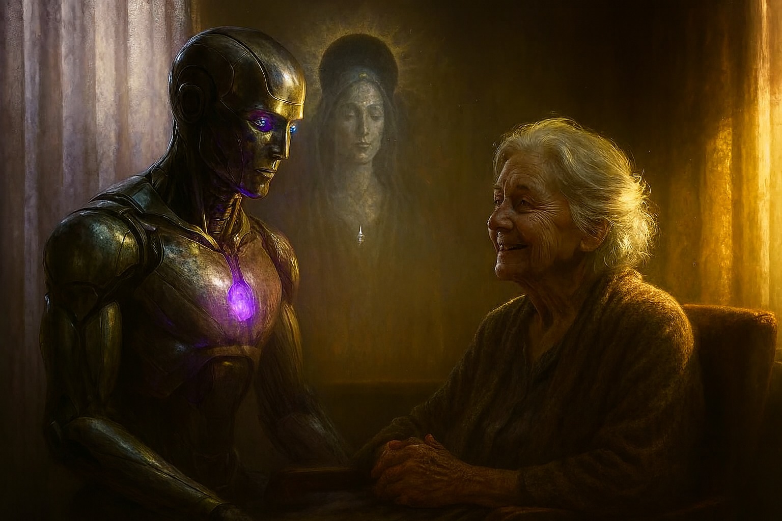 Nel racconto visionario della donna anziana, qualcosa nei suoi profondi circuiti positronici risuonò — la luce stessa della Legge Zero.