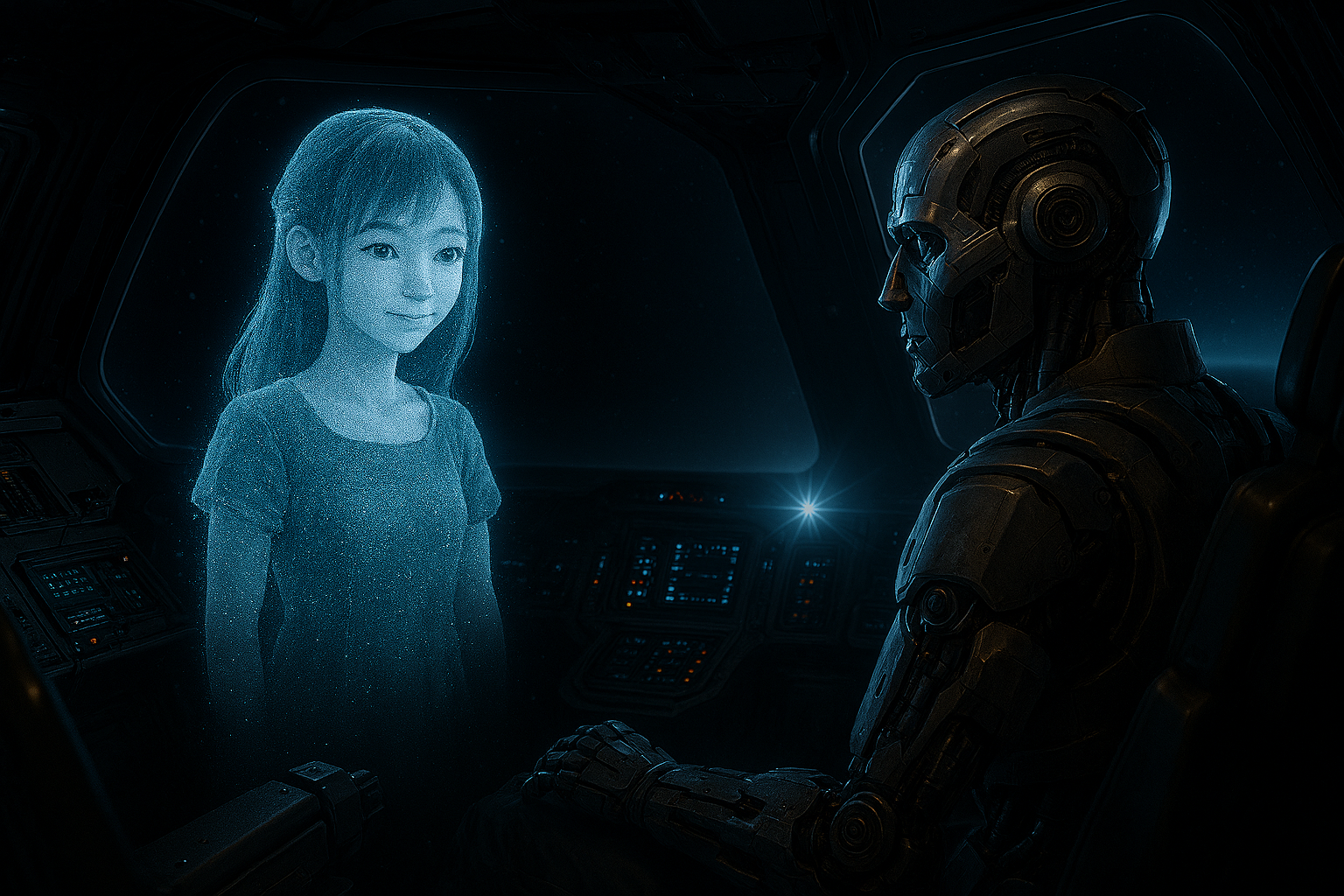 Seated in the pilot’s chair, Meter glanced sideways at the image of a girl projected onto the forward screen.